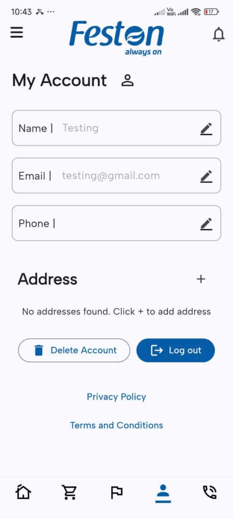 Open the app and click on the user icon located at the bottom right corner to go to the “My Account” page.