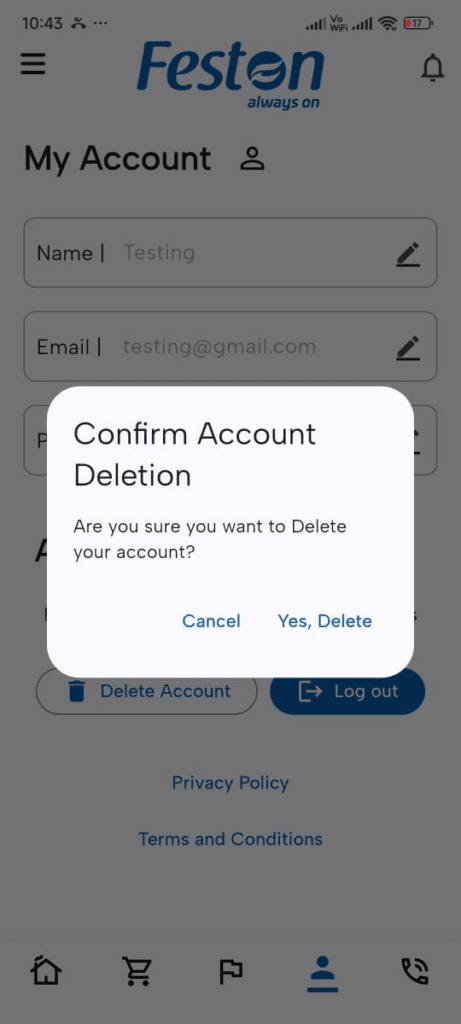 A confirmation popup will appear. Click “Yes, Delete” to proceed with deleting your account.
