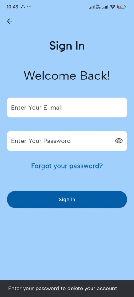 Once the process is complete, you will be redirected to the signup page, and your account will be deleted from the system.